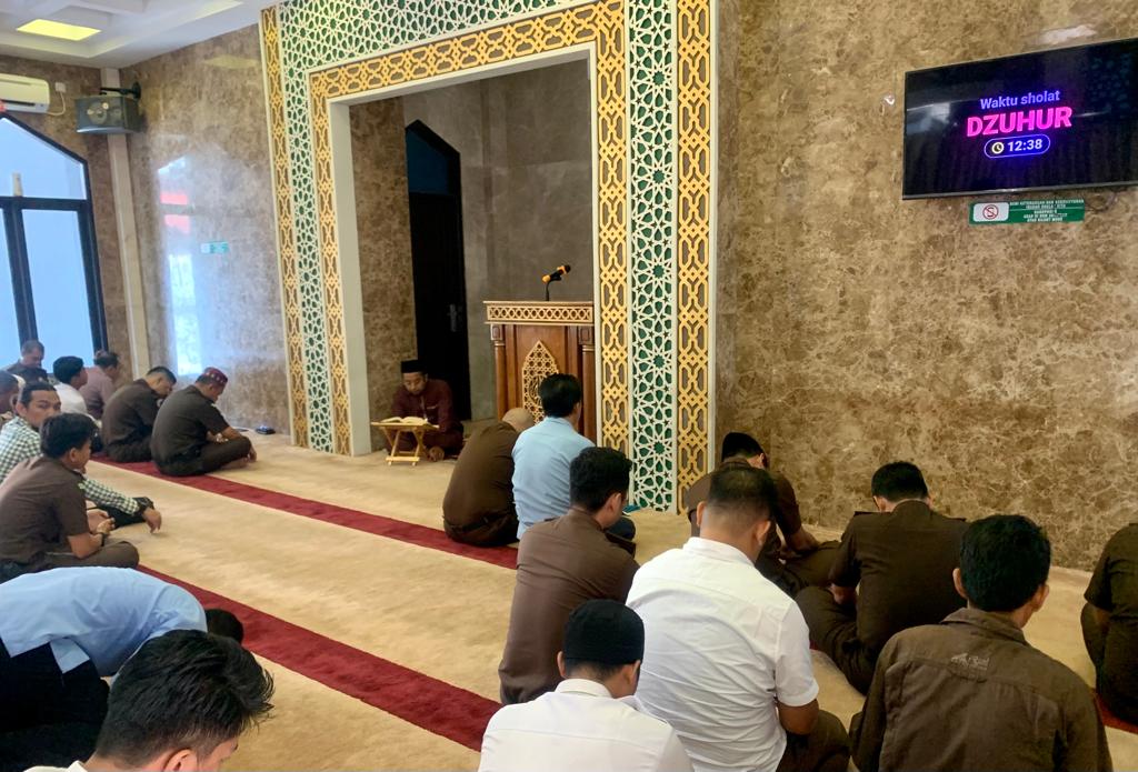 Kegiatan Tausiyah Ba’da Dzuhur di Masjid Al-Mizan Kejaksaan Tinggi Riau mengikuti secara ketat protokol kesehatan (prokes), sebut Kasi Penkum Kejati Riau Bambang Heripurwanto (Ucu).