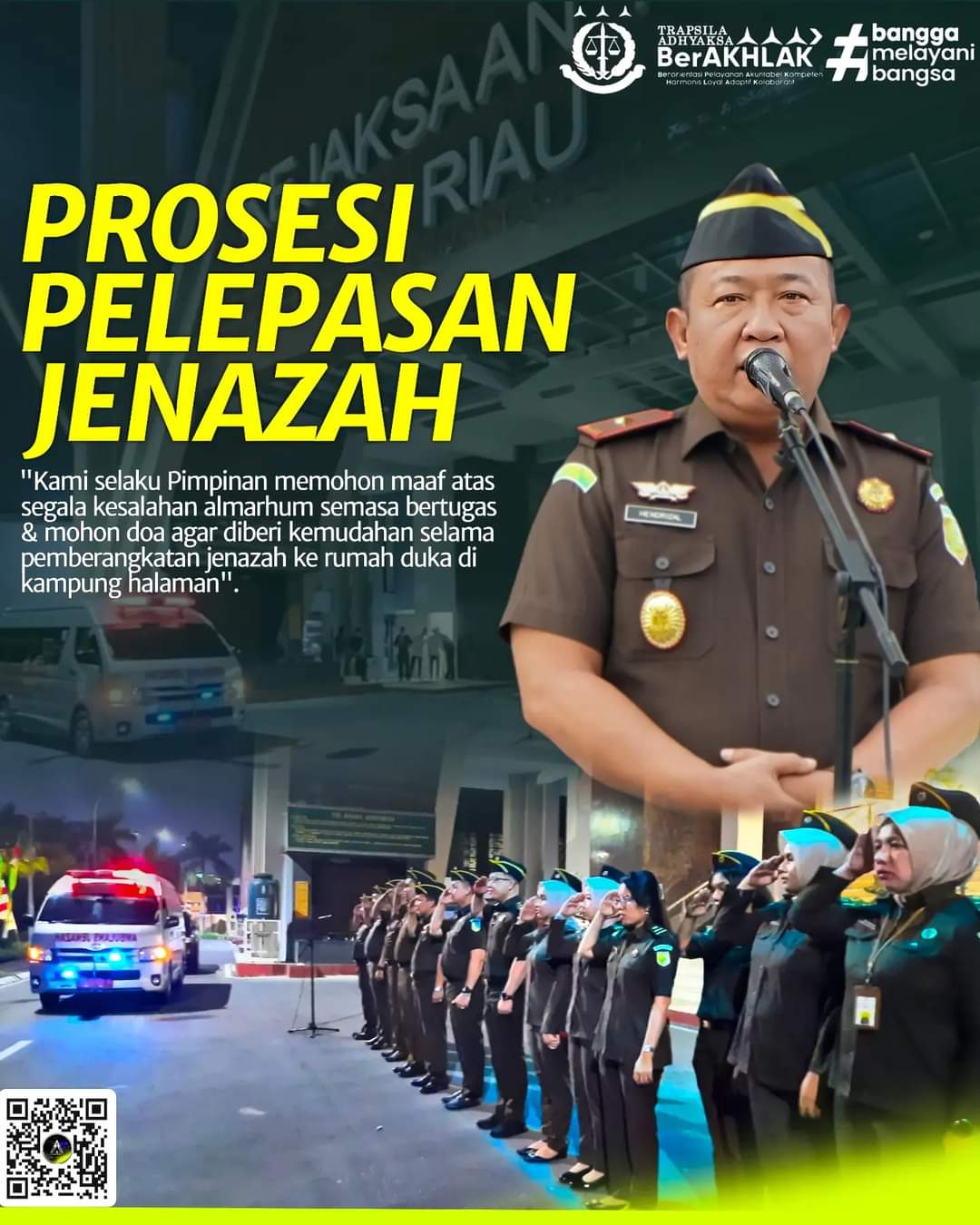Dan diakhir penyampaiannya, Wakil Kepala Kejaksaan Tinggi Riau Hendrizal Husin, SH., MH juga memohon doa agar diberikan kemudahan dan keselamatan selama pemberangkatan jenazah.